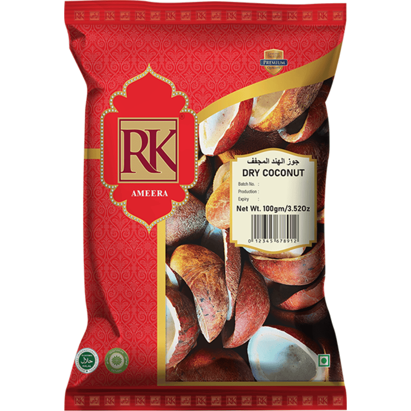 Dry coconut, also known as desiccated coconut, is the grated and dehydrated flesh of a mature coconut. It has a dry and powdery texture with a mild, nutty flavor. Dry coconut is commonly used in baking, confectionery, and cooking, adding richness and texture to dishes, desserts, and smoothies. It is a versatile ingredient in both sweet and savory recipes.