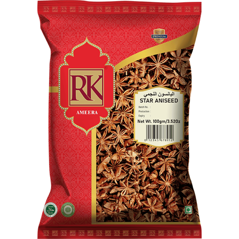 Star aniseed is a distinctive spice with a star-shaped appearance, derived from the fruit of the Illicium verum tree. It has a strong, licorice-like flavor and a sweet, aromatic scent. Star aniseed is a common ingredient in Asian cuisines, used in soups, broths, marinades, and desserts to add a unique and exotic taste.