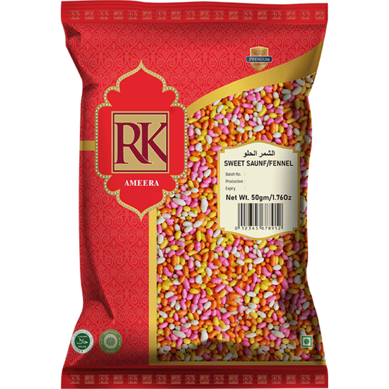Sweet saunf, also known as sweet fennel seeds or sugar-coated fennel seeds, are a popular mouth freshener and digestive aid. These seeds are fennel seeds coated with sugar or candy, resulting in a sweet and refreshing flavor. Sweet saunf is commonly consumed after meals to freshen breath and aid digestion.